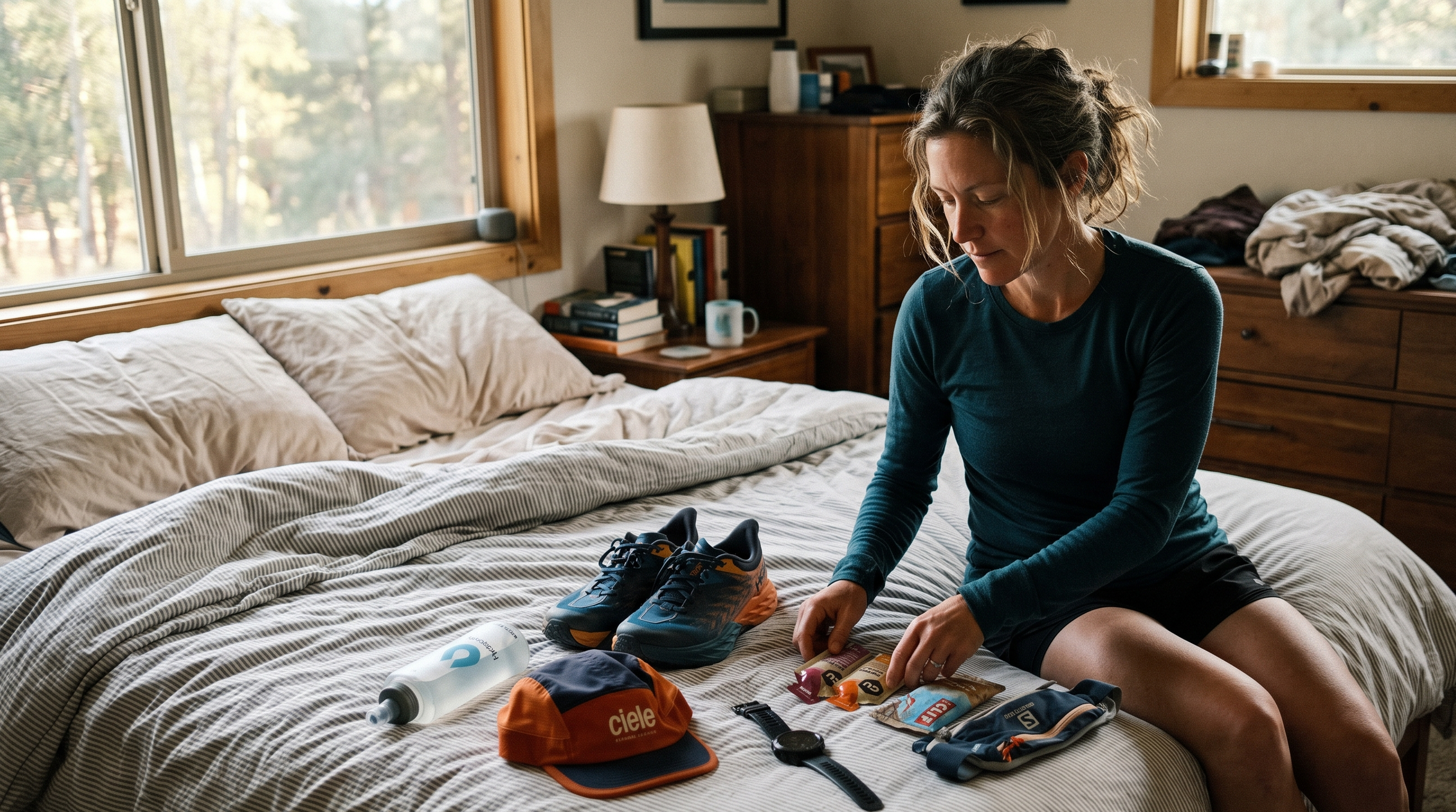Lay it all out. Shoes, socks, shorts, shirt, hat, sunglasses, watch, water bottle, or vest. Anything you plan to eat or drink on the course. Make sure it’s all clean, charged, and ready before Saturday. Waking up Friday night to hunt for a bottle cap is not the pre-race experience you’re going for.